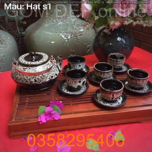 Bộ sản phẩm gồm: 1 ấm, 6 chén, 6 đĩa kê chén, 1 khay gỗ