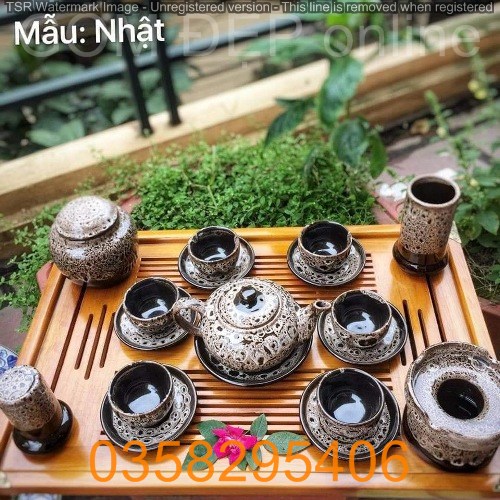 Bộ sản phẩm gồm: 1 ấm, 6 chén, đĩa kê chén, khay gỗ, phụ kiện