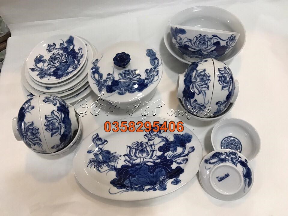 Bộ sản phẩm gồm: Bát cơm, bát mắm, đĩa muối, đĩa các phi, tô các cỡ, phạng cơm