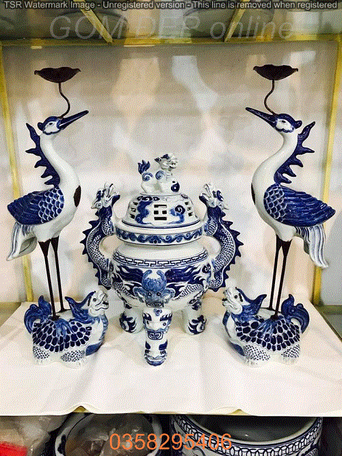 Bộ đỉnh hạc số 3 men lam được sản xuất bằng loại đất sét cao cấp nhất tạo lên xương gốm cứng chắc, bên ngoài được phủ một lớp men đặc trưng của bát tràng mà không nơi nào có. Sản phẩm được nung ở nhiệt độ 1300 độ C, khử được toàn bộ tạp chất, kim loại nặng và hóa chất độc hại. Tạo nên độ bền đẹp vĩnh cửu theo thời gian và an toàn cho sức khỏe người sử dụng.