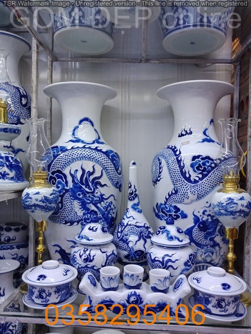 Đồ thờ vẽ rồng lam được sản xuất bằng loại đất sét cao cấp nhất tạo lên xương gốm cứng chắc, bên ngoài được phủ một lớp men đặc trưng của bát tràng mà không nơi nào có. Sản phẩm được nung ở nhiệt độ 1300 độ C, khử được toàn bộ tạp chất, kim loại nặng và hóa chất độc hại. Tạo nên độ bền đẹp vĩnh cửu theo thời gian và an toàn cho sức khỏe người sử dụng.
